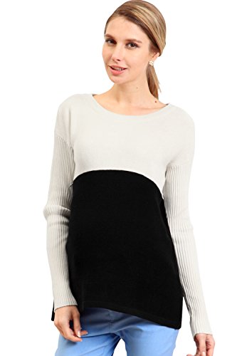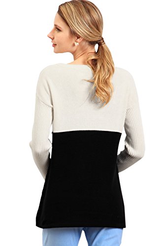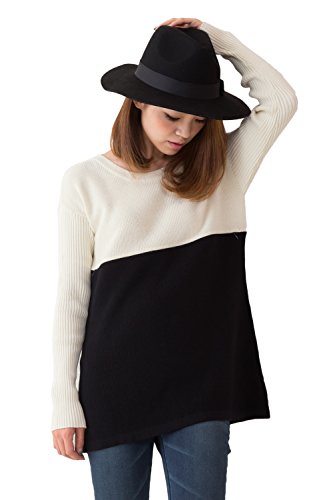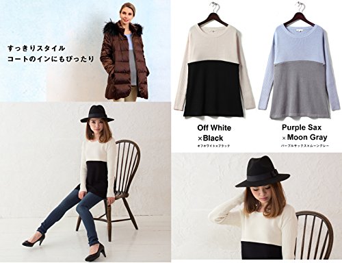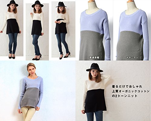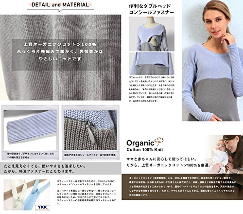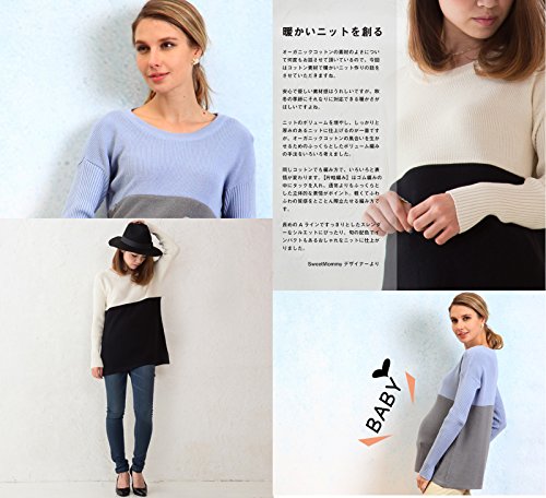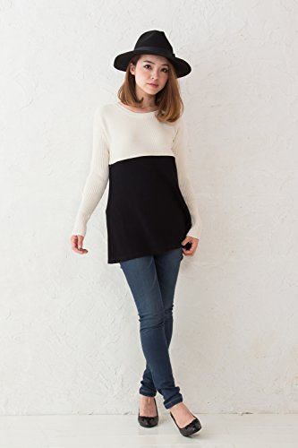 Sweet Mommy オーガニックコットン100% ふっくら片畦編み バイカラー Aライン ニット 赤ちゃんのお肌にも安心 授乳トップス セーター 授乳服 / マタニティ L ホワイト×ブラック