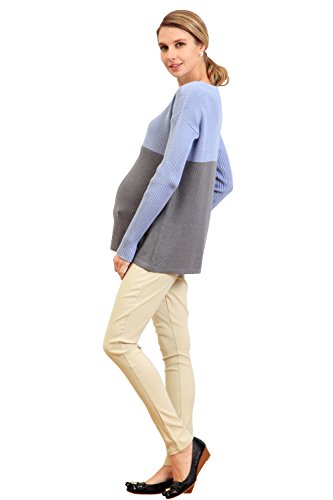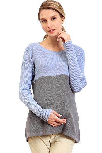 Sweet Mommy オーガニックコットン100% ふっくら片畦編み バイカラー Aライン ニット 赤ちゃんのお肌にも安心 授乳トップス セーター 授乳服 / マタニティ M パープルサックス×ムーングレー