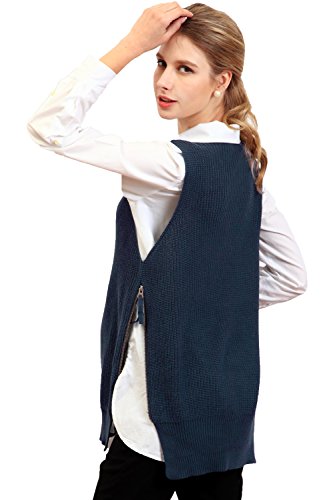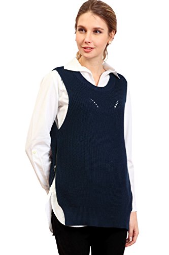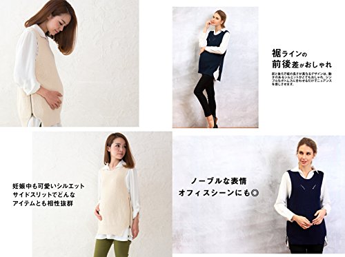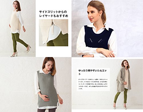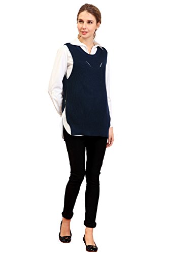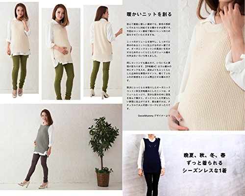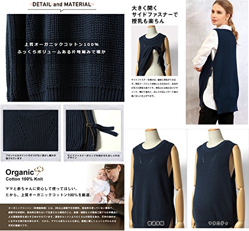 Sweet Mommy オーガニックコットン100% ニットベスト 授乳ニット ふっくら片畦編み 赤ちゃんのお肌にも安心 ロング丈 サイドスリット ママニット 春 秋 冬 産前産後 授乳服 マタニティ M ネイビー