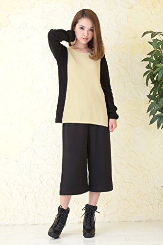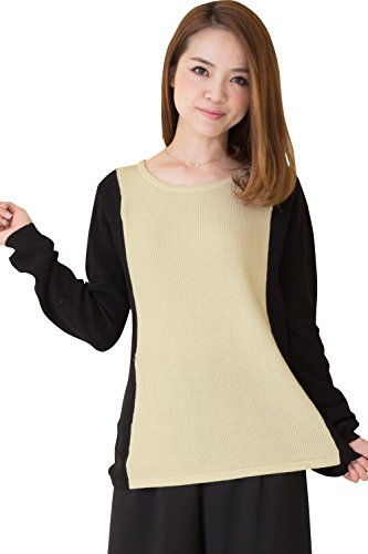 Sweet Mommy オーガニックコットン100% Aライン バイカラー ふっくら片畦編み ニット 赤ちゃんのお肌にも安心 授乳トップス セーター 産前産後 授乳服 / マタニティ L ライトベージュ×ブラック
