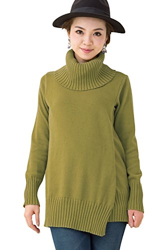 Sweet Mommy マタニティウェア 授乳服 トップス ふっくらニット オーガニックコットン100% ざっくり片畦編み オフタートル リブ袖 赤ちゃんの肌にも安心 授乳 セーター トップス マタニティ 授乳服 産前産後 秋 冬/F/オリーブ