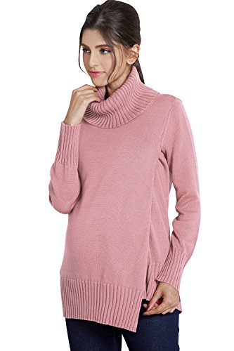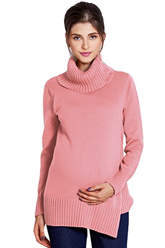 Sweet Mommy マタニティウェア 授乳服 トップス ふっくらニット オーガニックコットン100% ざっくり片畦編み オフタートル リブ袖 赤ちゃんの肌にも安心 授乳 セーター トップス マタニティ 授乳服 産前産後 秋 冬/F/ピンク