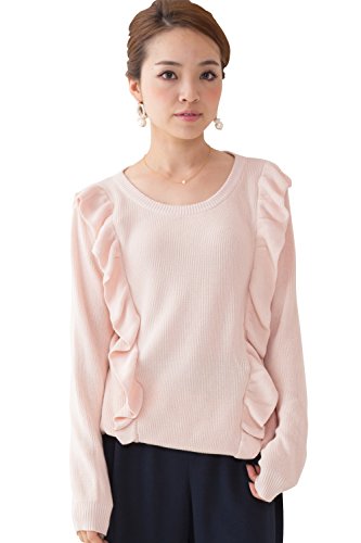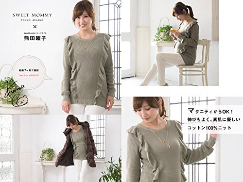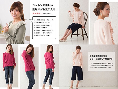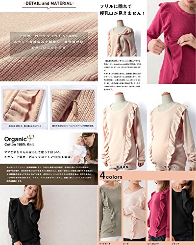 Sweet Mommy ふっくらオーガニックコットン 大人可愛い フロントフリル あったかニット トップス セーター 授乳服 マタニティ/M/ピーチ