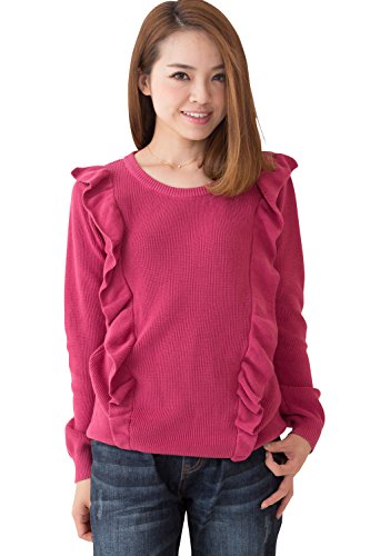 Sweet Mommy ふっくらオーガニックコットン 大人可愛い フロントフリル あったかニット トップス セーター 授乳服 マタニティ/M/ローズピンク