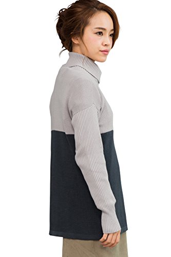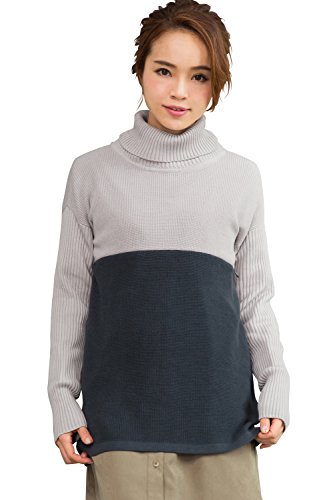 Sweet Mommy バイカラー オーガニックコットン ふっくら片畦編み ロング丈 リブ袖 Aライン タートルニット セーター 授乳服 マタニティ/L/グレー×チャコール