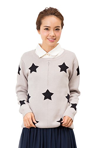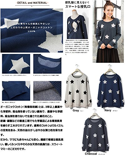 Sweet Mommy オーガニックコットン100% ふっくら ジャガード編み スター リブ袖 星柄 ニット セーター あったかトップス 授乳服 マタニティ/M/グレー