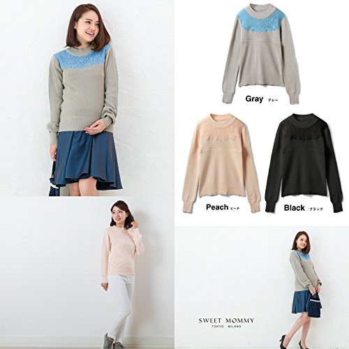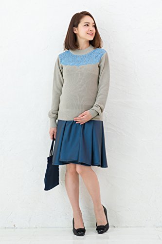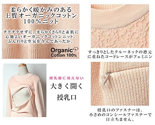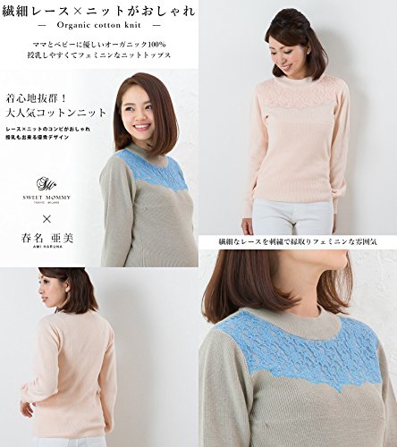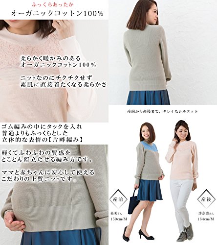 Sweet Mommy マタニティウェア 授乳服 トップス ふっくらニット オーガニックコットン100% ざっくり片畦編み レースコンビ クルーネック 赤ちゃんの肌にも安心 刺繍 授乳 セーター トップス マタニティ 授乳服 産前産後 秋 冬/グレー/M