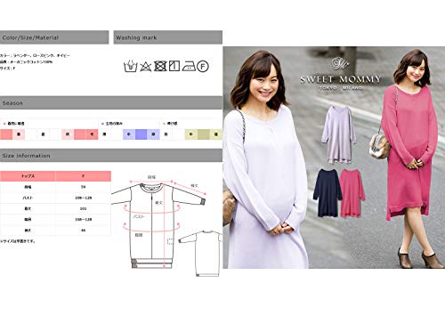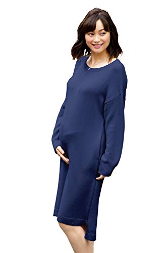 Sweet Mommy マタニティ 授乳服 ワンピース オーガニックコットン100% ニット ボートネック ネイビー F