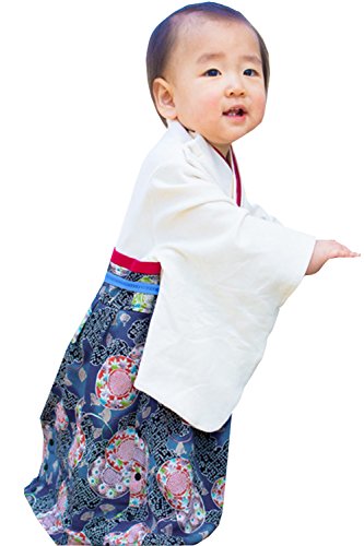 Sweet Mommy 袴 ロンパース ベビー 着物 カバーオール 日本製和柄ちりめん コットン身頃 ネイビー 50-70