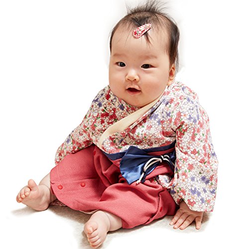 Sweet Mommy 袴 ロンパース ベビー 着物 カバーオール 日本製和柄ちりめん さくらホワイト 90
