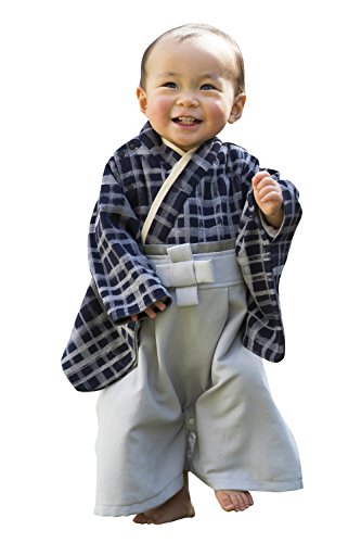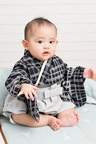 Sweet Mommy 袴 ロンパース ベビー 着物 カバーオール 日本製和柄ちりめん ネイビーチェック 90