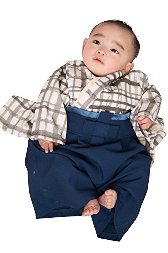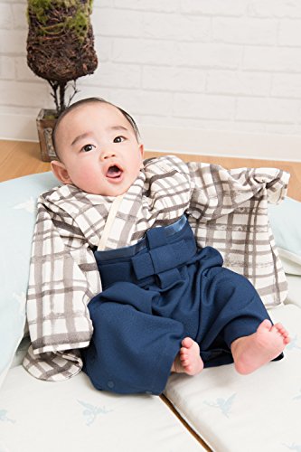 Sweet Mommy 袴 ロンパース ベビー 着物 カバーオール 日本製和柄ちりめん ホワイトチェック 50~70