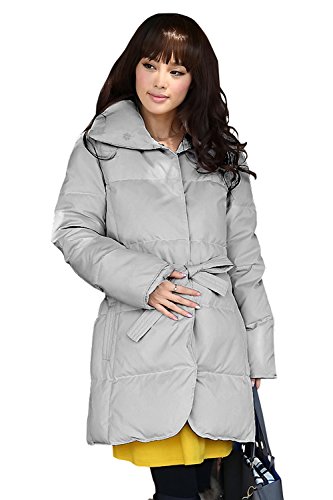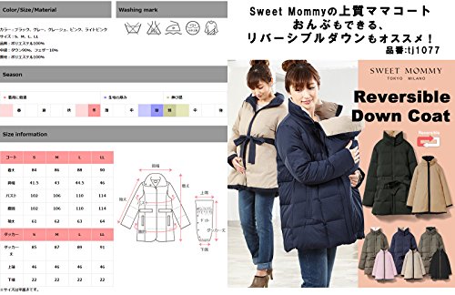 Sweet Mommy 上質ダウン90% 抱っこ対応 ダッカー付き ウエストリボン くるみボタン フェミニン ボリュームカラー 軽量 あったか ママコート ダウンコート 冬 産前産後兼用/グレー/L