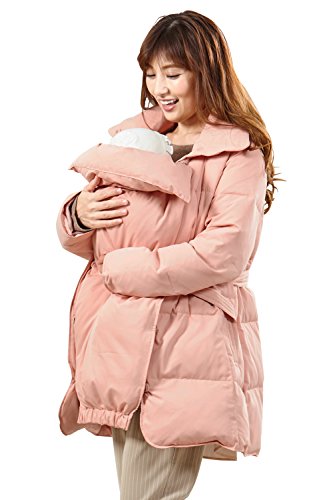Sweet Mommy 上質ダウン90% 抱っこ対応 ダッカー付き ウエストリボン くるみボタン フェミニン ボリュームカラー 軽量 あったか ママコート ダウンコート 冬 産前産後兼用/ピンク/S
