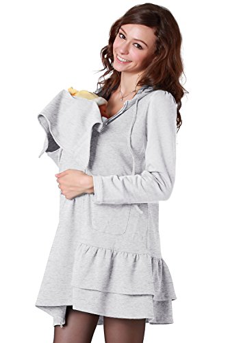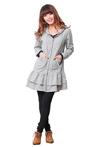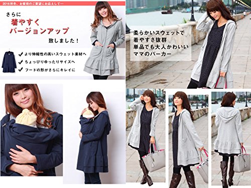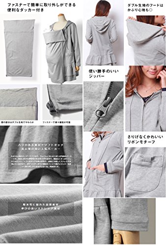 Sweet Mommy 柔らかスウェット ダッカー付き ロング パーカー 裾ティアードフリル 抱っこ対応 マタニティ M グレー