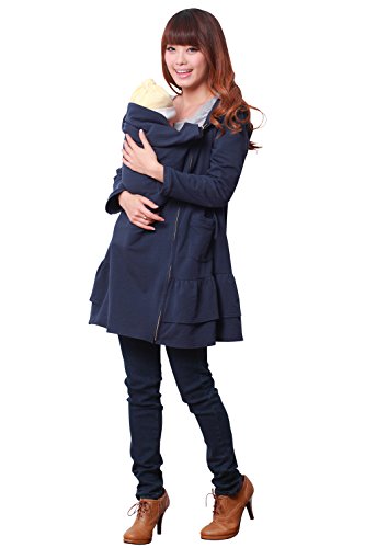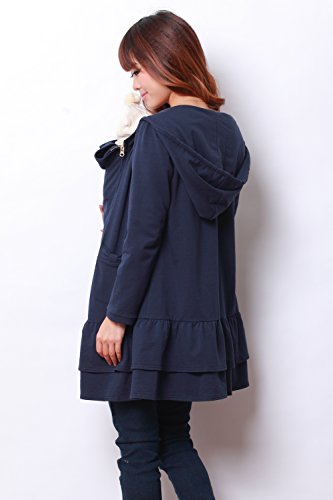 Sweet Mommy 柔らかスウェット ダッカー付き ロング パーカー 裾ティアードフリル 抱っこ対応 マタニティ M ネイビー