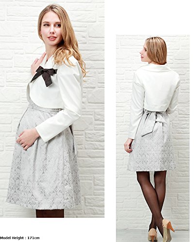 光沢あるリボンと丸みを帯びたフォルムが上品です。コンパクトなシルエットの中に、しっかりと存在感を主張してくれる華やかな雰囲気。ボタンフリーの優しいデザインで、プレママのお腹の丸みもとても可愛く見せてくれます。