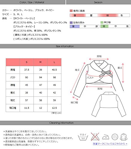 - サイズ(cm)S(着丈38,バスト90,肩幅37.5,袖丈57)M(40,94,39,58)L(42,98,40.5,59)