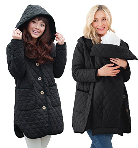 Sweet Mommy 抱っこ対応 ママコート マタニティ かるかわ キルティング 高機能ダッカー付き 大きいサイズ 丸みフード 日本製クリップ エルゴカバー ベビーカーカバー フットマフ 選べる 撥水素材・コットン素材 すっきりシルエット コーデュロイパイピング 春 秋 冬 軽量 産前産後兼用 マタニティウェア/M/ブラック