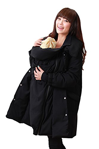 Sweet Mommy 上質ダウン90% モッズ風 だっこ対応 首袖リブ仕様 丸襟 大人カワイイ 軽量 あったか ダッカー付き 取り外し可能 ママコート プレミアム ダウンコート マタニティ 産前産後/L/ブラック