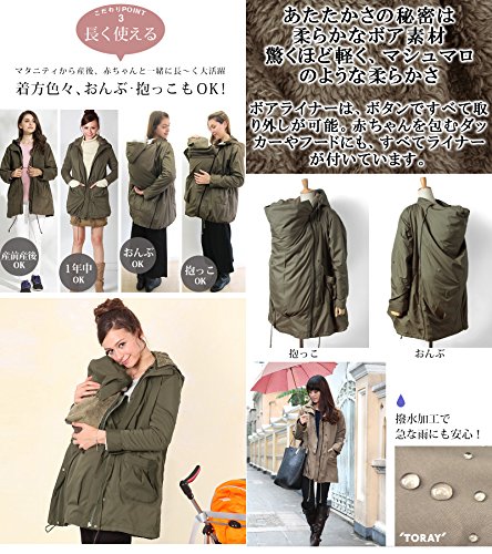 Sweet Mommy 抱っこ・おんぶ対応 ママコート モッズ風 日本製新素材 マシュマロ裏ボア ダッカー付き ライナー取り外し可能 撥水 UVカット 花粉対策 静電 軽量 フード 産前産後 一年中使える マタニティ 春 秋 冬/LL ブラック
