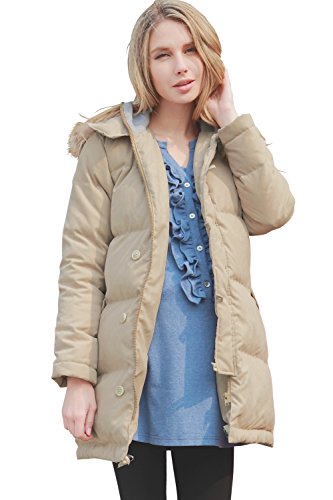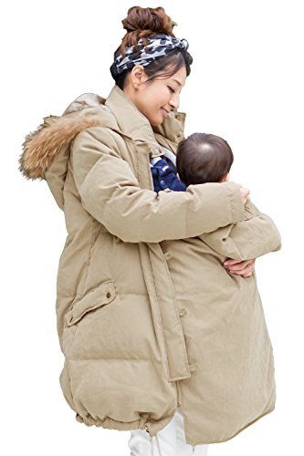 Sweet Mommy 上質ダウン90% モッズ風 ダウン ママコート だっこ対応 ラクーンファー付きフード マルチ防寒 ダッカー付き ベビーカーカバー だっこ紐カラー ペールカラー 産前産後 マタニティ M ベージュ