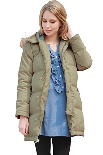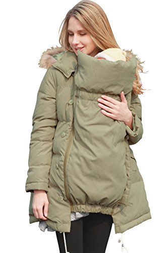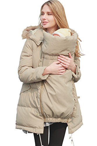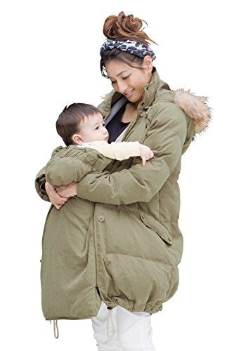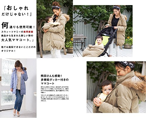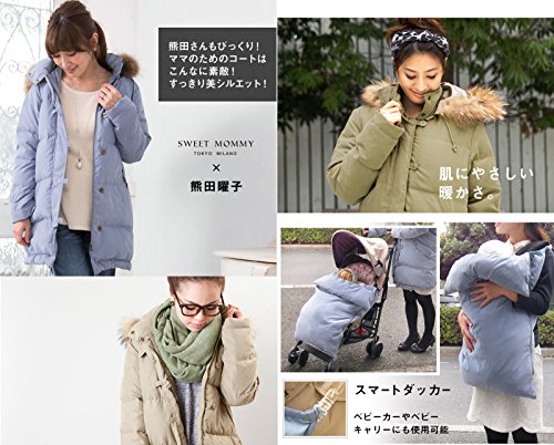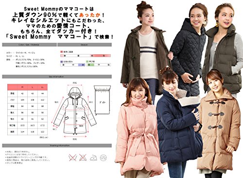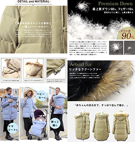 Sweet Mommy 上質ダウン90% モッズ風 ダウン ママコート だっこ対応 ラクーンファー付きフード マルチ防寒 ダッカー付き ベビーカーカバー だっこ紐カラー ペールカラー 産前産後 マタニティ M ライトカーキ