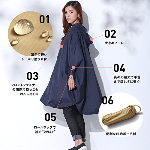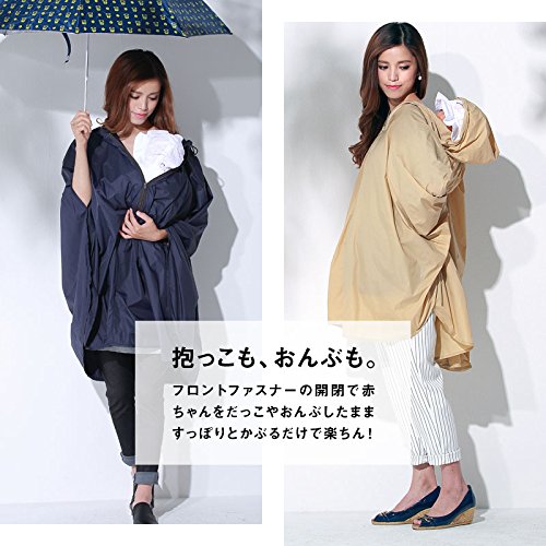 - 男女兼用 抱っこ・おんぶ対応 ポンチョタイプ レインコート (収納ポーチ付き)