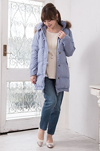 Sweet Mommy 上質ダウン90% モッズ風 ダウン ママコート だっこ対応 ラクーンファー付きフード マルチ防寒 ダッカー付き ベビーカーカバー だっこ紐カラー ペールカラー 産前産後 マタニティ/LL/ライトブルー