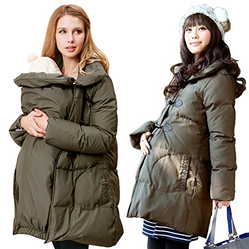 Sweet Mommy 抱っこ対応 ママコート ダッフル風 マタニティ 上質ダウン90% 襟2WAY ダッカー付き あったか プレミアムダウン トグルボタン ポケット付き 軽量 産前産後兼用/ LL カーキ