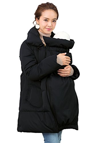 Sweet Mommy ダッフル風ママコート 上質ダウン90% 襟2WAY ダッカー付き あったか プレミアムダウン トグルボタン だっこ対応 ポケット付き 軽量 産前産後兼用 マタニティ/ S ブラック