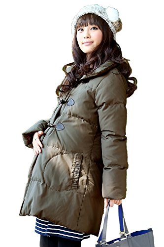 Sweet Mommy ダッフル風ママコート 上質ダウン90% 襟2WAY ダッカー付き あったか プレミアムダウン トグルボタン だっこ対応 ポケット付き 軽量 産前産後兼用 マタニティ/ S カーキ