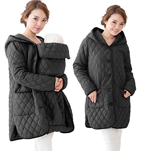 Sweet Mommy 抱っこ対応 ママコート マタニティ かるかわ キルティング 高機能ダッカー付き 大きいサイズ 丸みフード 日本製クリップ エルゴカバー ベビーカーカバー フットマフ 選べる 撥水素材・コットン素材 すっきりシルエット コーデュロイパイピング 春 秋 冬 軽量 産前産後兼用 マタニティウェア/L/ブラック 撥水