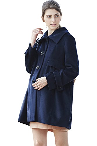 Sweet Mommy 濃密起毛 大きめ襟 上品 ママコート 抱っこ対応 臨月ママも美シルエット マルチユース防寒カバー ダッカー ベビーフード付き ベビーカーカバー 抱っこ紐カバー フォーマル 総裏地つき マタニティ/ L ネイビー