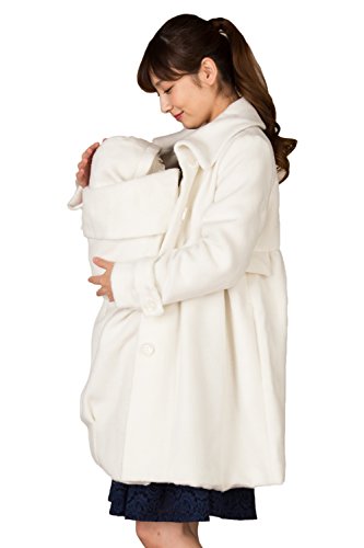 Sweet Mommy 濃密起毛 大きめ襟 上品 ママコート 抱っこ対応 臨月ママも美シルエット マルチユース防寒カバー ダッカー ベビーフード付き ベビーカーカバー 抱っこ紐カバー フォーマル 総裏地つき マタニティ/ L オフホワイト