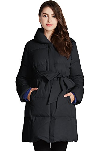 Sweet Mommy 上質ダウン90% ショールカラー 高機能ダッカー付き 大人カワイイ 美シルエット ウエストリボン ダウンママコート だっこ紐カバー ベビーカーカバー アウター 3WAY 産前産後 マタニティ/M/ブラック