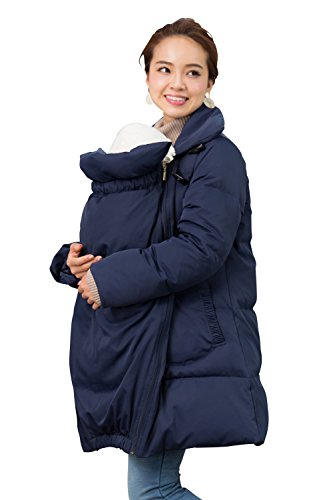 Sweet Mommy ダッフル風ママコート 上質ダウン90% 襟2WAY ダッカー付き あったか プレミアムダウン トグルボタン だっこ対応 ポケット付き 軽量 産前産後兼用 マタニティ/ 3L ネイビー