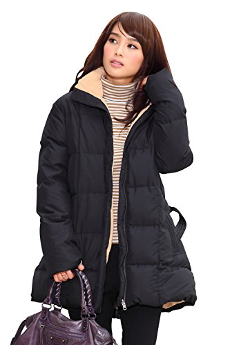 Sweet Mommy 上質ダウン90% リバーシブル 抱っこ おんぶ対応 撥水加工 ダッカー付き ウエストリボン 軽量 あったか バイカラー ママコート ダウンコート 産前産後兼用/ブラック×キャメル/LL
