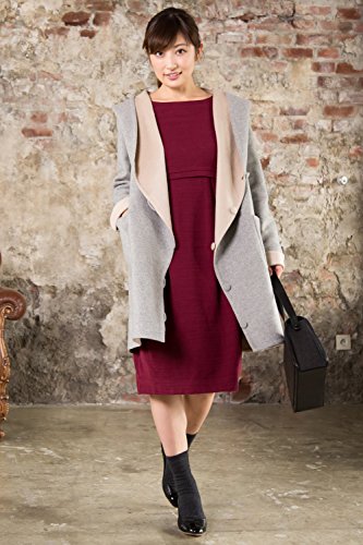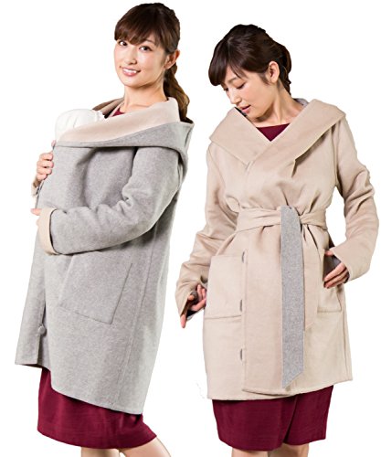 Sweet Mommy リバーシブル 上品 ママコート ウール混 抱っこ おんぶ 対応 ワイドカラー 大きめフード ウエストリボン コーディガン くるみボタン 産前産後 着回し マタニティ/LL/杢グレー×ベージュ