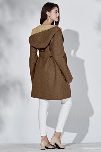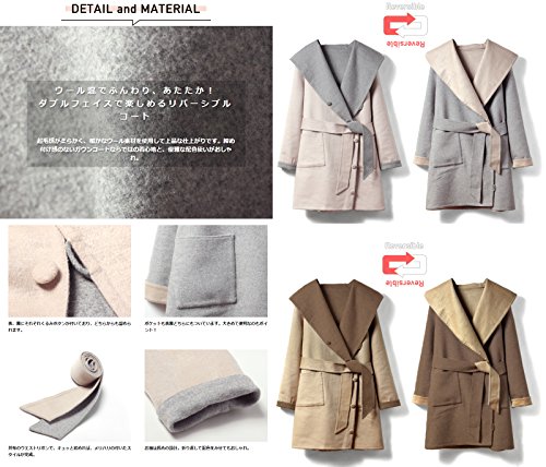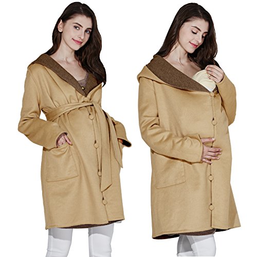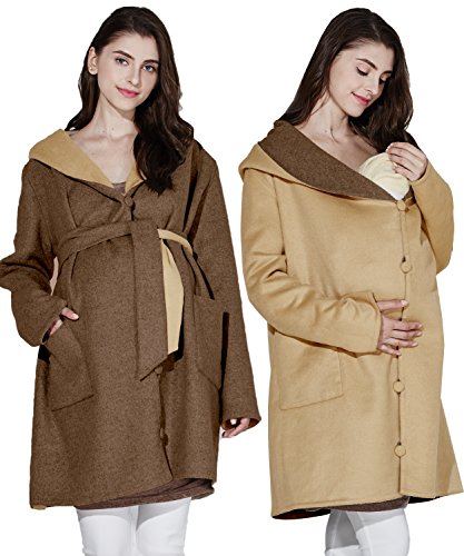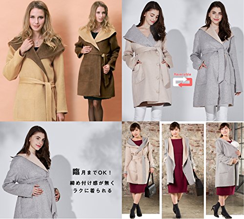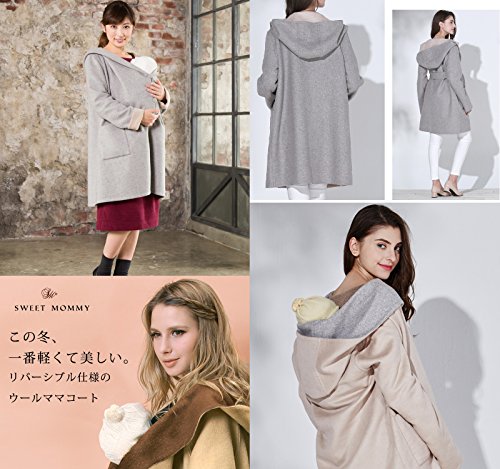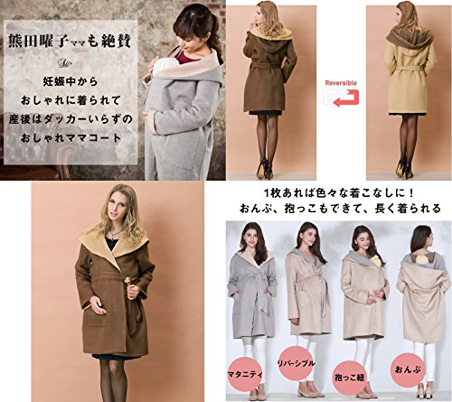 Sweet Mommy リバーシブル 上品 ママコート ウール混 抱っこ おんぶ 対応 ワイドカラー 大きめフード ウエストリボン コーディガン くるみボタン 産前産後 着回し マタニティ/M/ブラウン×イエローベージュ