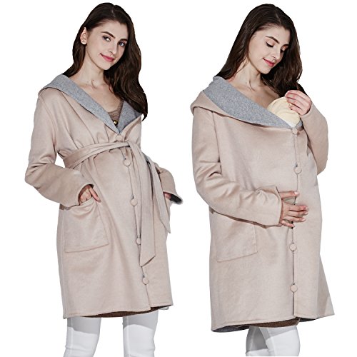 - 【ダブルフェイスで着回し力抜群!】ダッカー要らずでおんぶも抱っこもOK!ウール混暖かな上品ガウンコート。