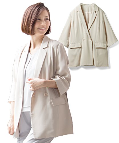 Sweet Mommy テーラード ダブルボタン ハンサム ジャケット ジョーゼット リボン取り外し可能 ロールアップボタン 7分袖 裏地付き フォーマル 大きいサイズ オフィス 上品 産前産後 マタニティ/グレージュ/S