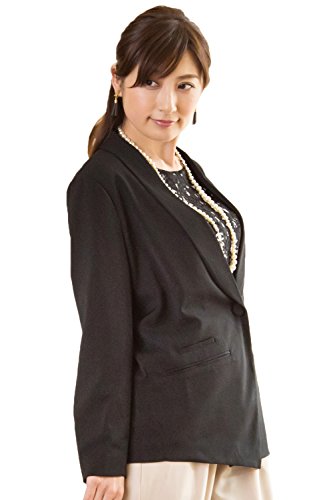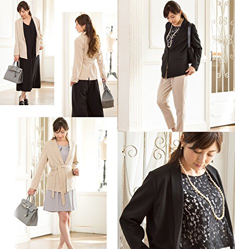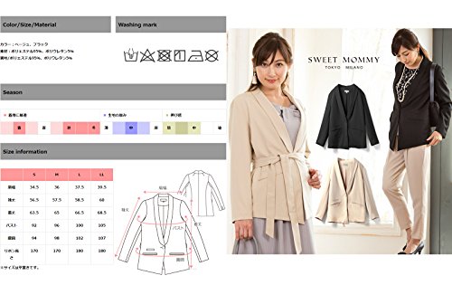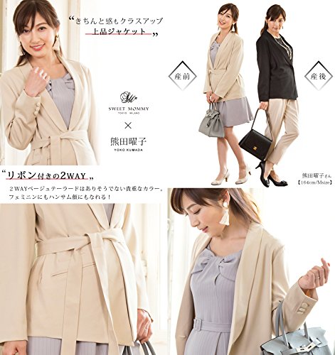 Sweet Mommy ショールカラー ハンサム ジャケット リボン取り外し可能 ブリティッシュ風ポケット 裏地付き フォーマル 大きいサイズ オフィス 上品 産前産後 マタニティ/ブラック/S