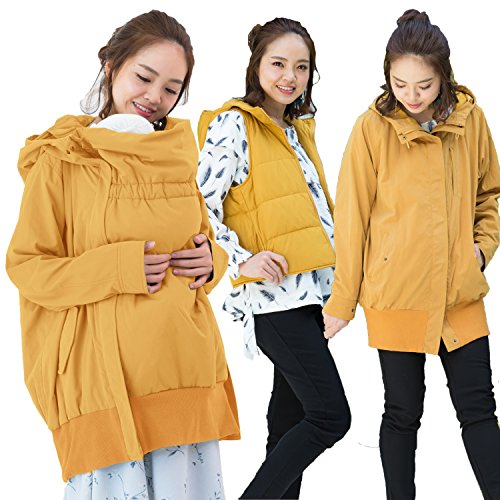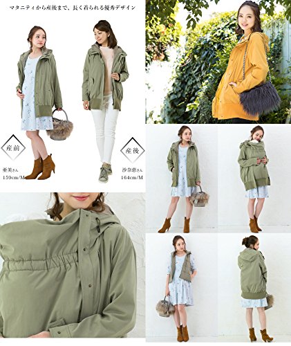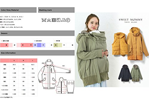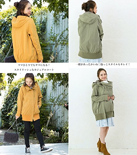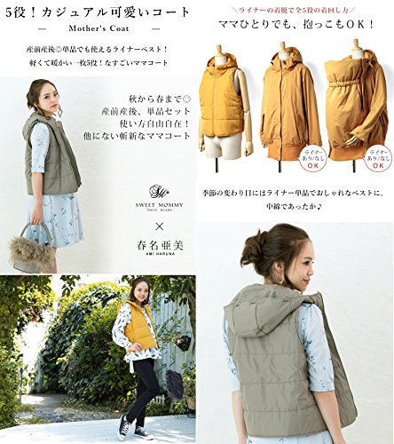 Sweet Mommy 抱っこ対応 ママコート マタニティ ライナーベスト付きモッズコート ダッカー付き 1枚5役 大きいサイズ すっきりシルエット カジュアル マウンテンパーカー 中綿ベスト 春 秋 冬 軽量 産前産後兼用 マタニティウェア/マスタード/M