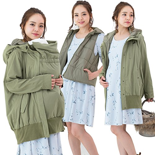 Sweet Mommy 抱っこ対応 ママコート マタニティ ライナーベスト付きモッズコート ダッカー付き 1枚5役 大きいサイズ すっきりシルエット カジュアル マウンテンパーカー 中綿ベスト 春 秋 冬 軽量 産前産後兼用 マタニティウェア/ライトカーキ/M