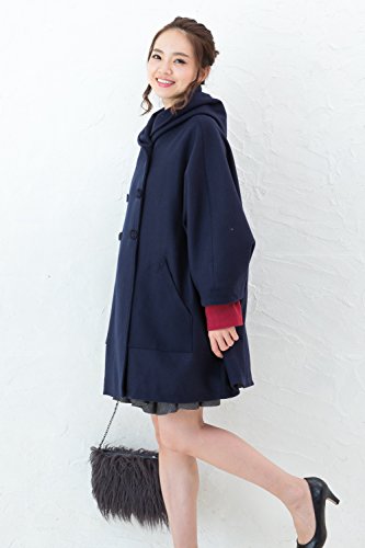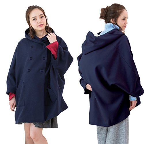Sweet Mommy 抱っこ おんぶ対応 ママコート ポンチョ ドルマンスリーブ 選べる素材(ツイード/ウール混) 2段調節ボタン ママだけでもかわいい 大きいサイズ 裏地付き 大きめフード 春 秋 冬 軽量 産前産後兼用/F/ネイビー【ウール混・無地】