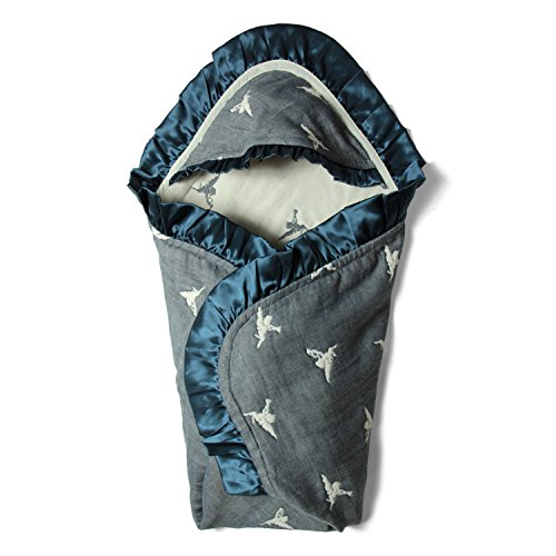 Sweet Mommy 【日本製】 フリルおくるみ 最上級6重ガーゼ リバーシブル フード付き ふんわり わたあめガーゼ 毛玉になりにくい 洗濯するたび柔らか 冷房対策にも 天然素材 ベビー 男の子 女の子 0~3歳 赤ちゃん ギフト 出産祝い 春 夏 秋 冬/ネイビー(エンジェル)/F