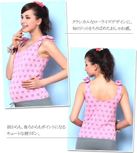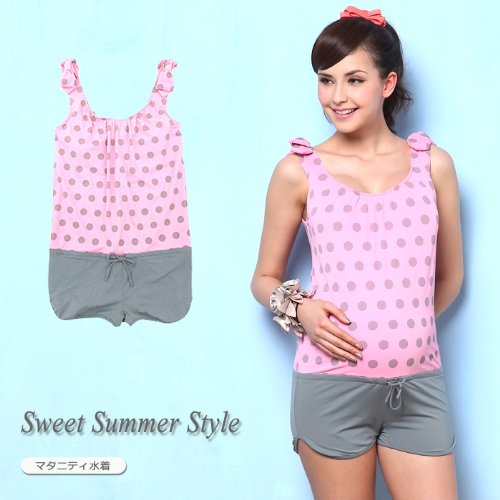 スウィートマミー 授乳服マタニティ 肩リボン ピンクドット切り替え マタニティ水着/M/ピンク