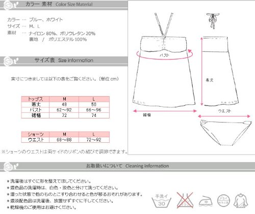 - サイズ(cm):M(【トップス】着丈48,バスト62~92,裾幅72,【ショーツ】ウエスト68~88),L(50,66~96,74,72~92)