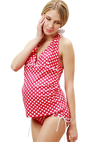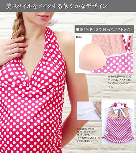 スウィートマミー (Sweet Mommy) ドットプリント ホルターネック マテニティ スイムウェア 水着 3点セット L ピンク